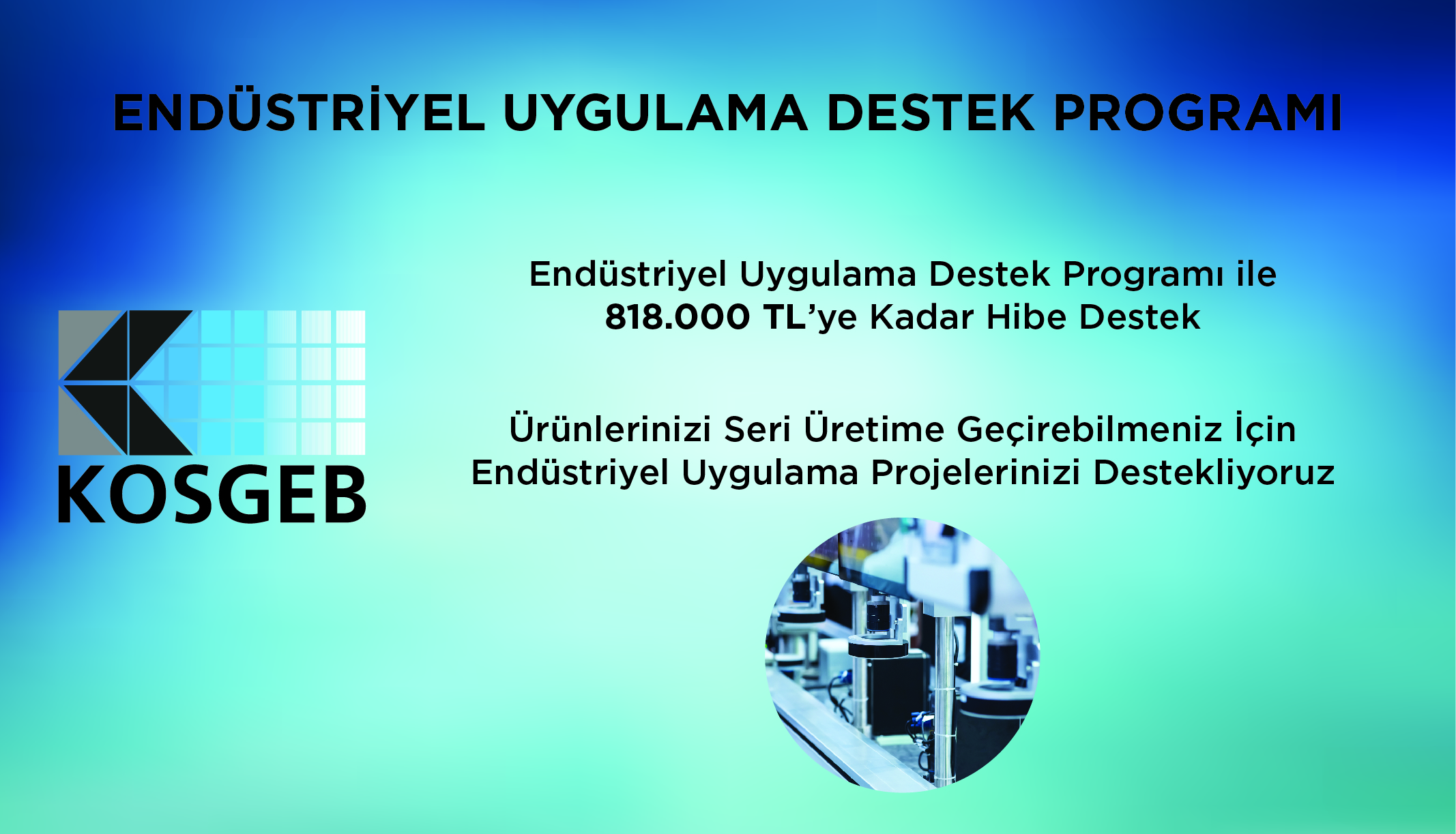Endüstriyel Uygulama Programı; Yeni bir ürün/hizmetin; üretilmesi, kalitesinin artırılması, maliyet düşürücü nitelikte yeni tekniklerin uygulamaya alınması, ürün veya süreçlerinin pazara uygun biçimde ticarileştirilmesi amacıyla hazırlanan projelerin KOSGEB tarafından desteklenmesidir.